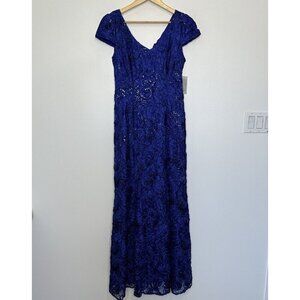 Alex Evenings Maxi Dress Blue Sequin Size 8