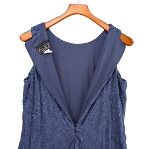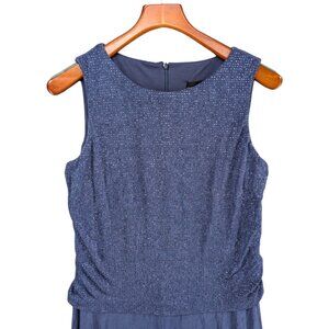 Alex Evenings Maxi Dress Gown Blue Embellished Sleeveless Formal Cocktail Sz 10