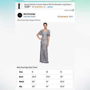 Chic metallic gown by Alex Evenings. Adorned with shimmering sequins and elegant cut-out sleeves. Nothing wrong zippers zip
