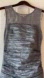 Chic metallic silver, dark gray evening dress. Features elegant ruching, curve clinging dress ending with a mermaid-style skirt. Ideal for evening events.