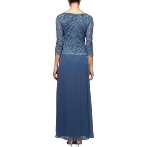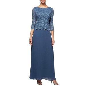 Alex Evenings Mock Two-Piece Sequin Chiffon Gown Lace Dress Wedgewood Sz. 6P