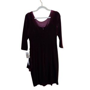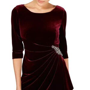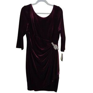 Alex Evenings NWT Wine Velvet Ruched Beaded 3/4 Sleeve Cocktail Dress Size 14
