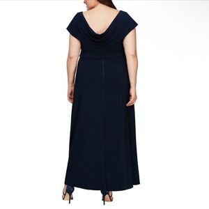 Alex Evenings NWT Cowl Neck A-Line Matte Jersey Pleated Bodice Gown Navy 12