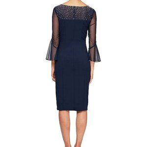 Alex Evenings Navy Blue Embellished Illusion 3/4 Bell Sleeve Dress