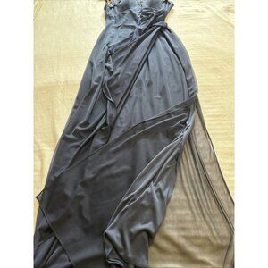 Alex Evenings Navy Metallic Cutout Lace Maxi Gown/Dress Side Ruched Skirt SZ6