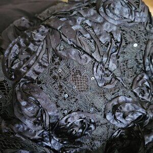 Alex Evenings Navy Tea-Length Soutache Sequined Dress Tie Belt Size 8 Party