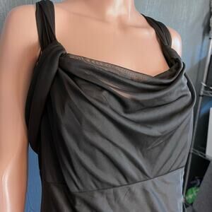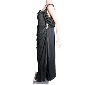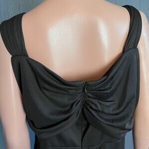 This Alex Evenings Woman formal maxi gown is new with tags. Empire waist, cold shoulder style with chiffon draping to the floor and additional layering on the back area as well as under the arms. Side ruched layering enhances the figure. 100% polyester, machine wash and tumble dry. Special occasion, cocktail party, holiday, wedding, opera, sexy, figure flattering.