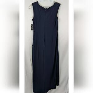Alex Evenings side ruched long jersey gown - Cascade side ruching - Embroidered detail at neckline - Sleeveless - Slit on left side - Concealed rear zipper - Built in soft cups
