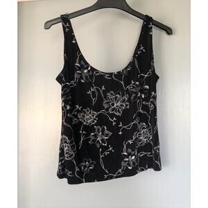 Alex Evenings Petite Sleeveless tank Top Medium black floral mettalic
