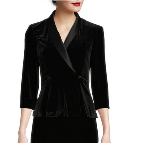 Alex Evenings Petite Velvet Satin Portrait Collar 3/4 Sleeve Modified Peplum Wrap Top