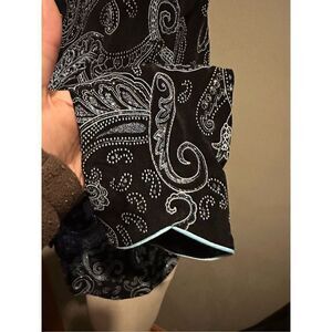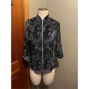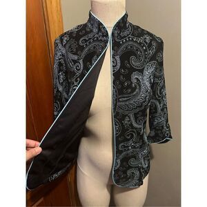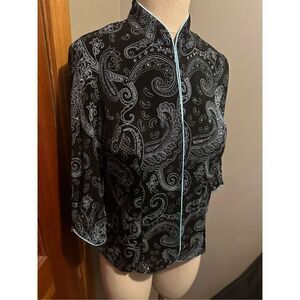 Alex Evenings Petite Women’s Stretch Shine Black Blue Paisley Cardigan Size M