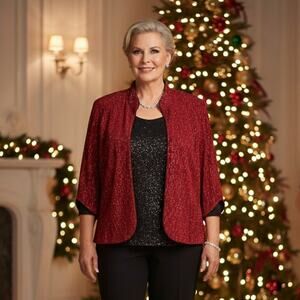 Alex Evenings Plus Size Jacket Womens 1X Glitter Holiday Party Cocktail Sparkly