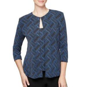 Alex Evenings Printed Jacket Black/Blue Women's Size Small