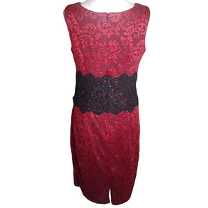 Alex Evenings Red Lace W/ Black Lace Waist Trim Knee Length Dress