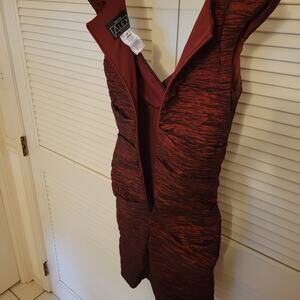 Alex Evenings Red Ruched Sheath Cocktail Dress Petite 6 Black Accents