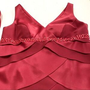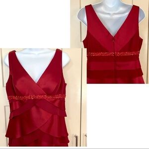 Alex Evenings Red Sleeveless Dress 8 Cocktail Party Tiered Embellished V-neck