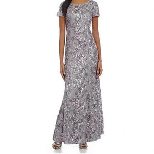 Only wore once (as a “mother of the bride” dress) and has been stored in a plastic covering since. Like-new condition.