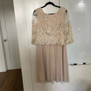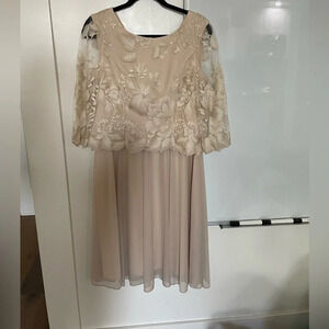 Alex Evenings Round Neck 3/4 Sleeve Floral Embroidered Stretch Mesh Dress Sz 10P