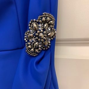 Excellent used condition, Alexander Evenings brand Royal Blue Gown. Worn once for August wedding and reception. Beautiful fit and vibrant color with silver accent on left hip. Please ask questions or for additional pictures!