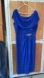 Stunning royal blue maxi dress with draped neckline. Features an embellished waist detail. Ideal for formal events.
