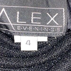 Alex Evenings SIZE 4 BLACK SILVER GLITTERY Sheath Dress w/ DRAPE Cowl Neck