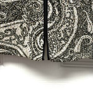 Alex Evenings Sequin Paisley Top, Black, Tan, Gold ZipUp, Shoulder Pads, Size 10