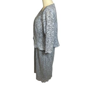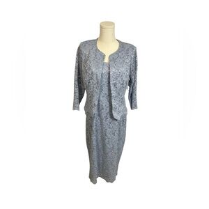 Alex Evenings Sequined Lace Sheath Dress + Jacket Hydrangea Blue NWT 2PC Sz 8