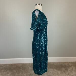 Alex Evenings Sequined V-Neck Short Sleeve Sheath Cocktail Dress Green Size 6