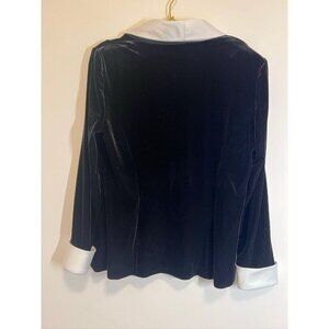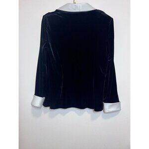 Alex Evenings Set Crystal Hook Front Satin Velvet Blazer Shirt Black Large