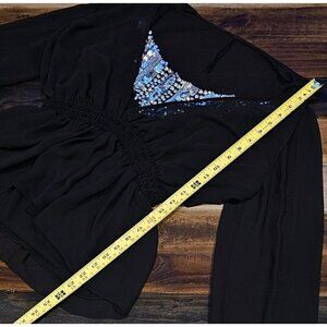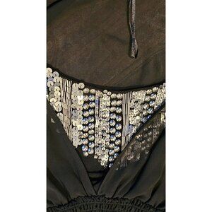 Alex Evenings Sheer Blouse Sliver Sequin Cami Elastic Waist & Cuffs Black Large