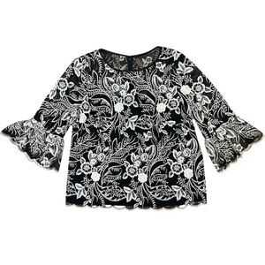 Alex Evenings Sheer Embroidered Bell Sleeve Blouse Black Metallic 2X RUNS SMALL