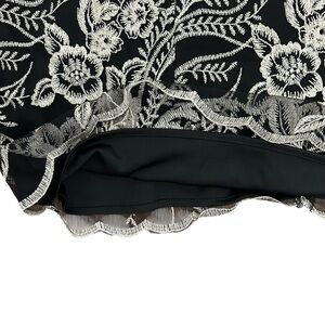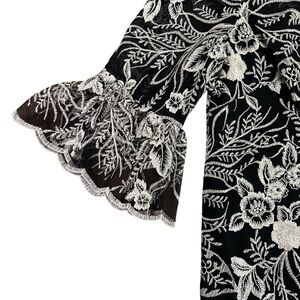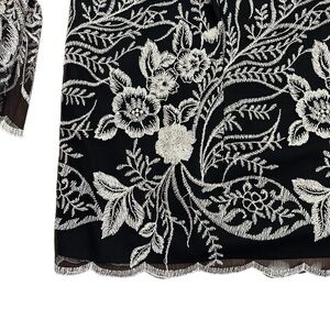 • Sheer black overlay with silvery-white and gold metallic embroidery