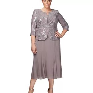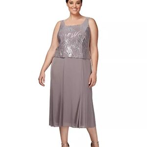 Alex Evenings Silver Asymmetrical Dress