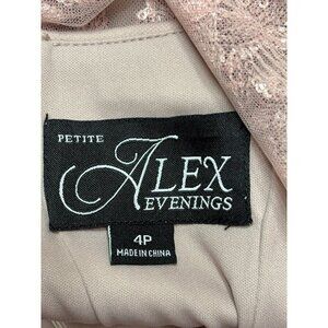 Alex Evenings Size 4 Petite Sequined Embroidered Mauve Maxi Dress Cap Sleeves