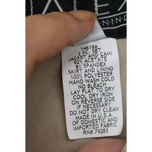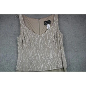 This is a Women's Evening Dress by Alex Evenings that is sleeveless and sequined. It is a size 14. When originally sold, it had a jacket. But this is only the dress. The cami is 92% Acetate and 8% Spandex. The skirt is 100% Polyester. When laying flat, it measures: Armpit to armpit-19.5" and the length is 50". It zips in the back. It has small sequins on the cami that are just beautiful. In good condition. This would be great for a night on the town.