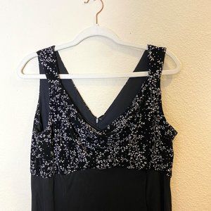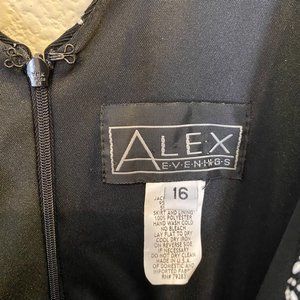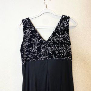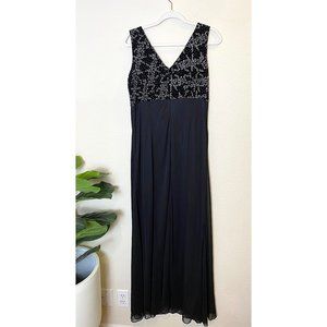 Alex Evenings Sleeveless V-Neck Chiffon Maxi Gown Dress in Black, Size 16.