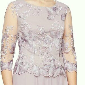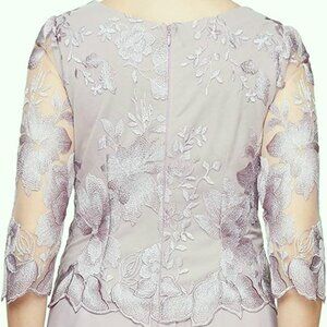 Alex Evenings Smokey Orchid Grey Illusion Sleeve Embroidered Midi Dress