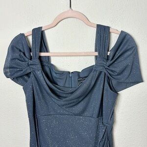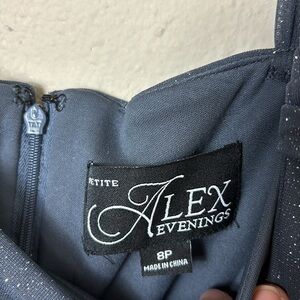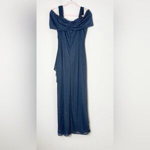 Alex Evenings Sparkly Navy Blue Draped Ruffle Cold Shoulder Gown size 8P