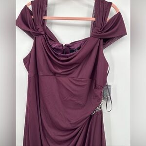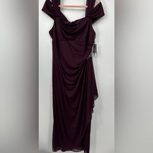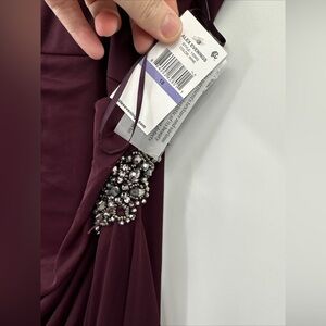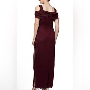 Alex Evenings Square Neck Cold Shoulder Cap Sleeve Side Brooch Gown Wine Sz 18