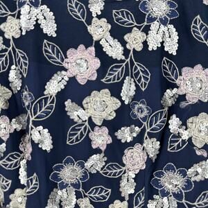 Alex Evenings Stretch Embroidered Floral Sequin Ribbon Belt Top Sz Petite Large
