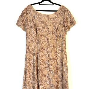 Alex Evenings Taupe Rosette Sequin Lace Short Sleeve Gown Size 18 Plus