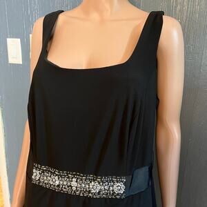 Alex Evenings Tiered Cocktail Midi Dress 16W Rhinestone Trim Quiet Luxury