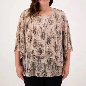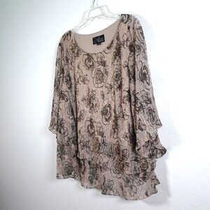 Alex Evenings Tiered Top Women's Plus Size 3X Floral Print Evening NEW