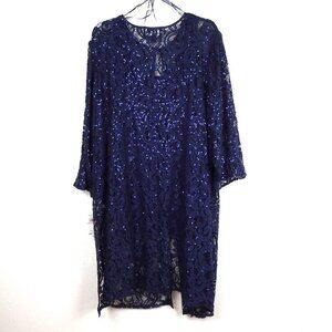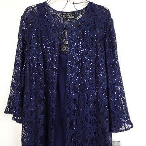 Alex Evenings Twinset Women’s Plus Size 2X Blue Sparkle Cocktail Evening Flowy