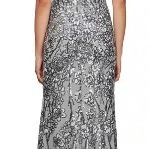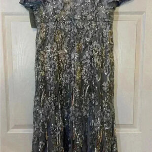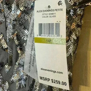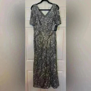 Alex Evenings V-Neck A-Line Sequin Dress with Cold Shoulder Flutter Sleeve 14P