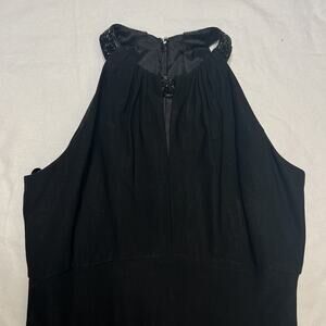 Vintage 90s Alex Evenings Black Beaded Halter Empire Waist Dress