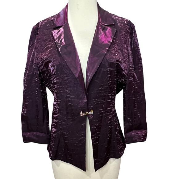Alex Evenings Vintage Blazer Jacket Women 8 Purple Crinkled Cocktail Whimsygoth