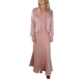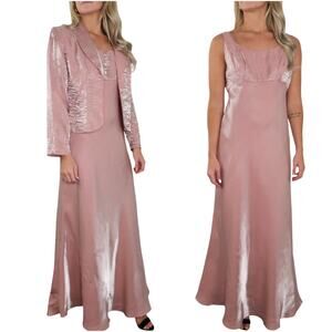 Alex Evenings Vintage Formal Blush Pink Satin Maxi Dress Blazer Set Medium 8P