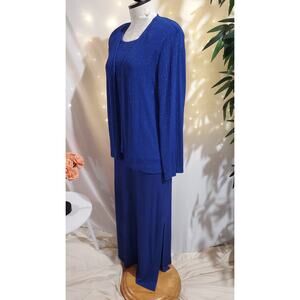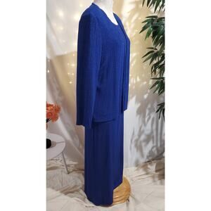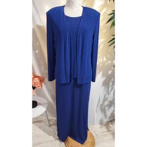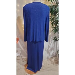 Alex Evenings Vtg 2 Piece Sparkle Maxi Glitter Dress Jacket Set Womens Size 12 Cobalt Blue