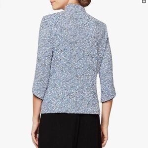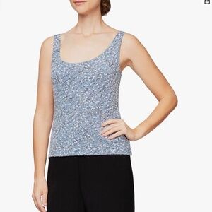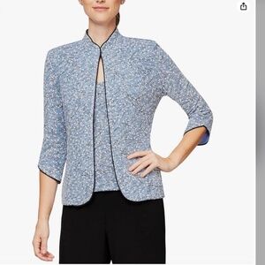 Alex Evenings woman's tank and jacket. Worn 1x for a wedding. Size Large but I think it runs a little small. Sells for $100 on Amazon and $170 at Dillards. Color/style is hydrangea blue. Trim is black. Perfect for mother/grandmother of bride/groom for wedding.
